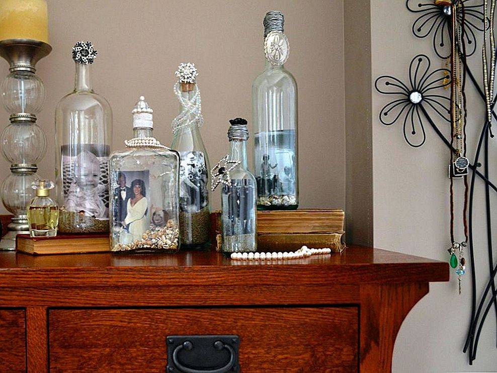 Во-первых, можно использовать для неё обычную стеклянную вазу или другой сосуд (банку, бокал, высокий стакан и т. п.). Наполните её накопившимися безделушками: монетками из разных стран, ракушками, цветными камушками, пробками… Вспомните, ведь вы наверняка видели что-то подобное в модных кафе, клубах или сувенирных лавках. Теперь такая интерьерная деталь появится и у вас!