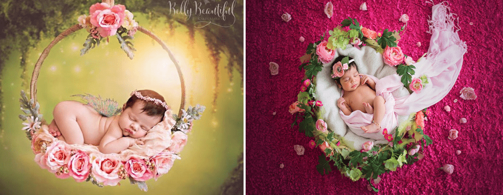 Беспроигрышный вариант – спящий младенец. Пока он спокойно и сладко спит, можно выложить вокруг крохи целую картину из подручных материалов и запечатлеть момент со всех ракурсов.