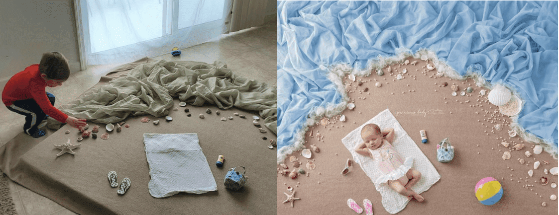 В этом случае очень важно, чтобы вокруг малыша не было лишних предметов. Только то, что соответствует задумке кадра