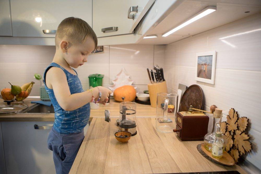 - «На улице дождик и нам будет некомфортно гулять, но я сейчас покажу что-то интересное на кухне».