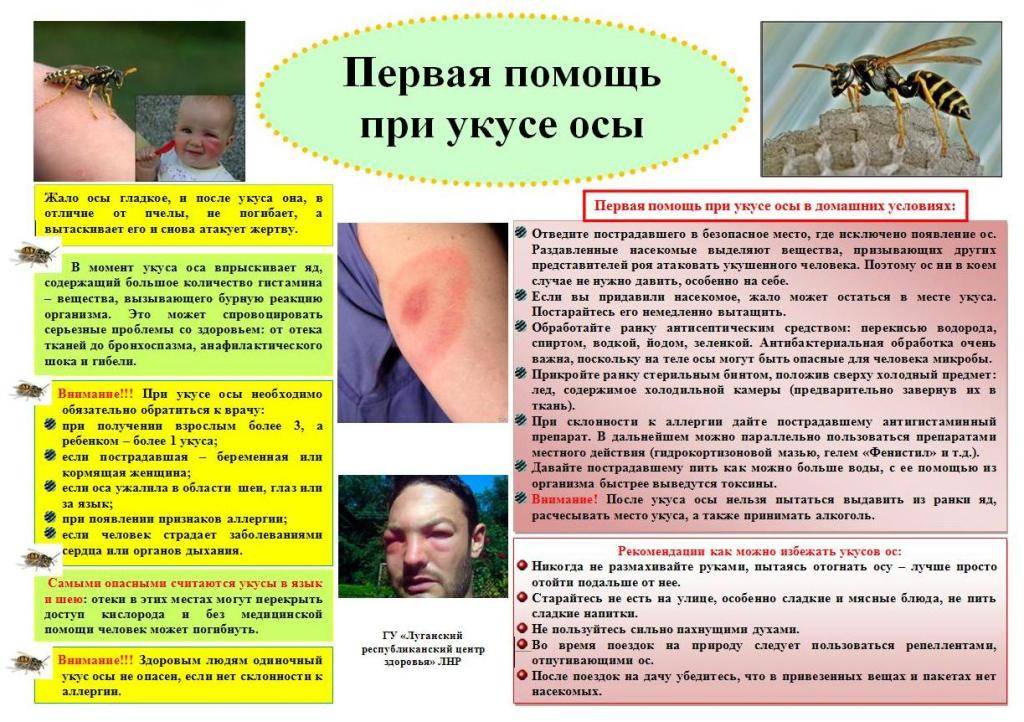 Чтобы избежать токсической реакции, сразу же после укуса дайте малышу противоаллергическое средство (Супрастин, капли Зодак, по инструкции). Также к месту укуса приложите что-нибудь холодное и обработайте его уксусом или раствором соды. В некоторых очень редких случаях возможен анафилактический шок, в результате которого происходит интоксикация организма, ребёнок теряет сознание. Велик риск летального исхода, поэтому обязательно срочно вызовите скорую помощь.