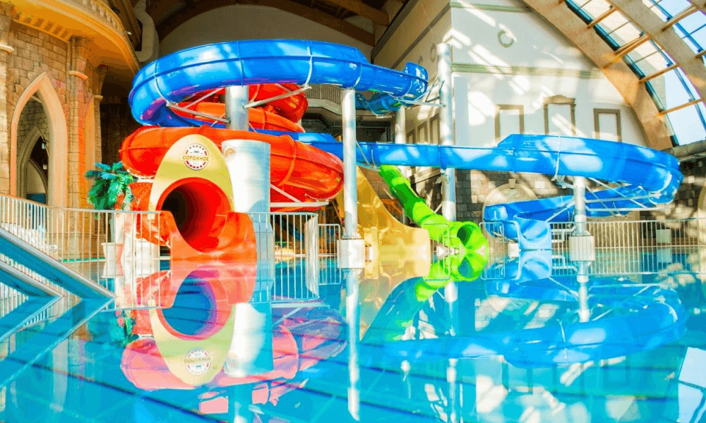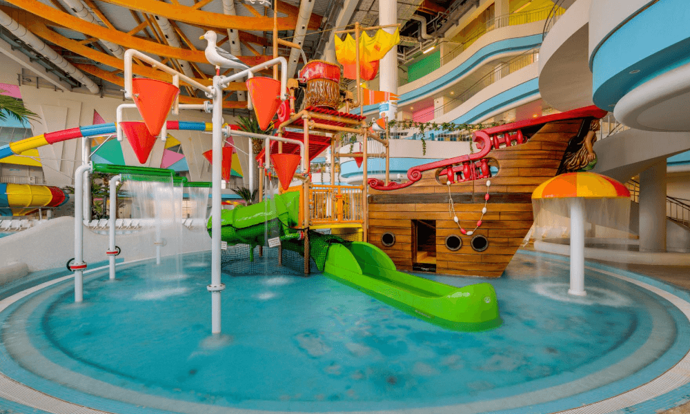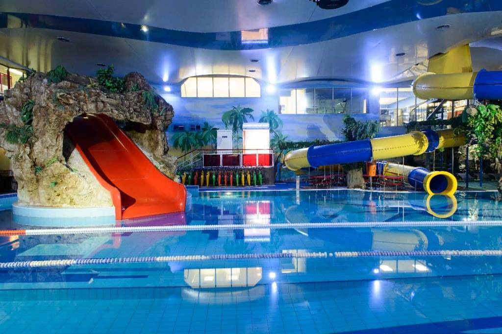 Этот водный комплекс не самый большой: четыре горки и три бассейна, но имеет оригинальный дизайн. Кроме этого есть SPA, салон красоты, сауны, фитнес-центр, детская игровая комната, ресторан, бильярд, боулинг, а на крыше открытый пляж.