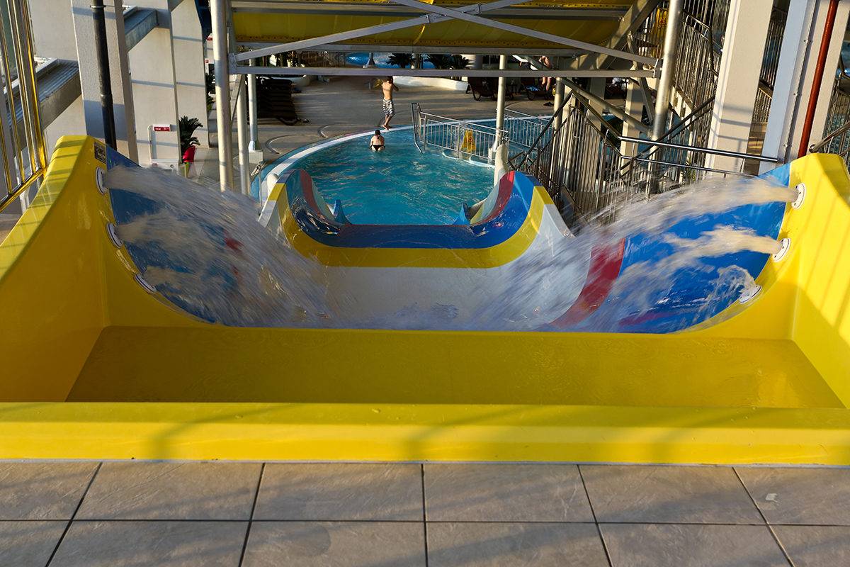 Этот водный комплекс не самый большой: четыре горки и три бассейна, но имеет оригинальный дизайн. Кроме этого есть SPA, салон красоты, сауны, фитнес-центр, детская игровая комната, ресторан, бильярд, боулинг, а на крыше открытый пляж.