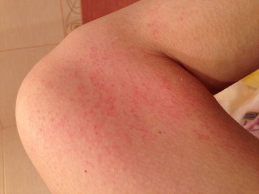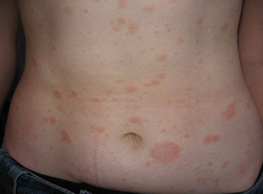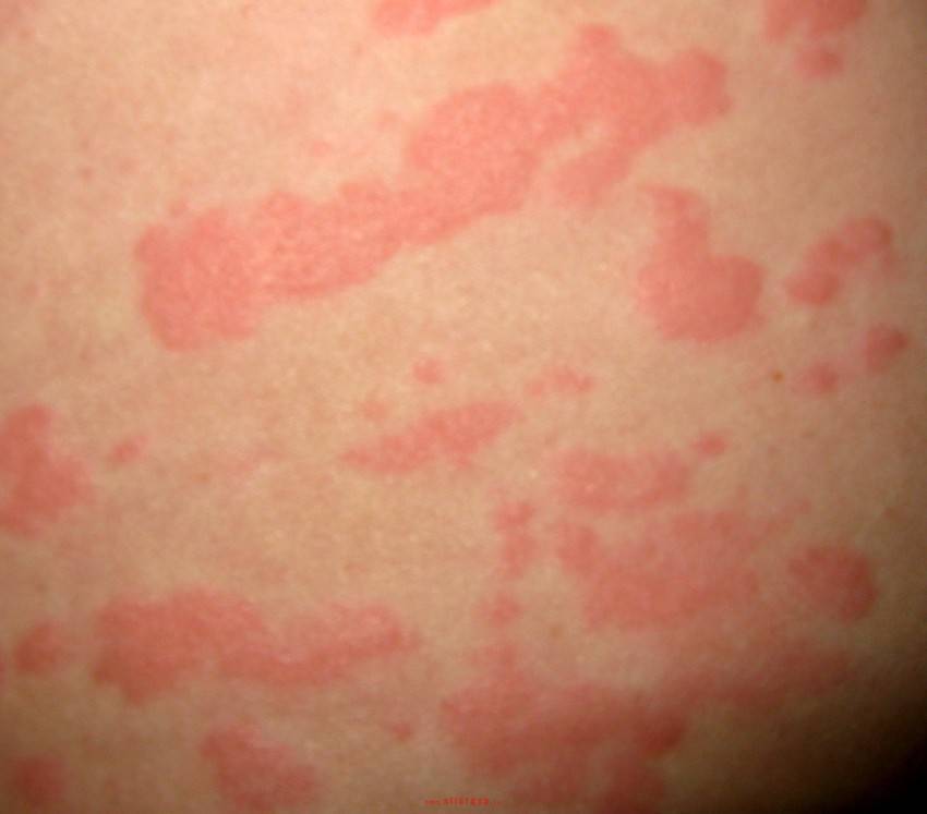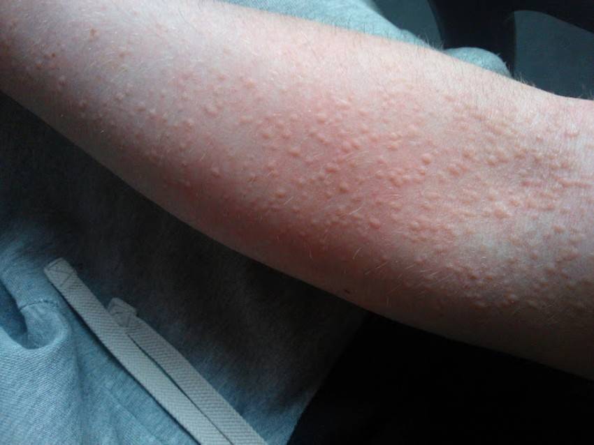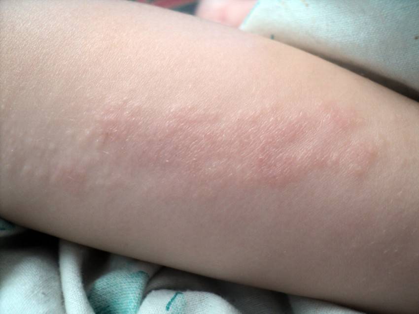 Самая распространённая форма сыпи при аллергии — крапивница. По внешнему виду она напоминает розовые пятна, появляющиеся на коже после контакта с крапивой. Крапивница — это реакция на пыльцу, косметику, пыль. Часто локализуется на сгибах локтей, коленей и запястья. Сопровождается сильным зудом и шелушением кожи.