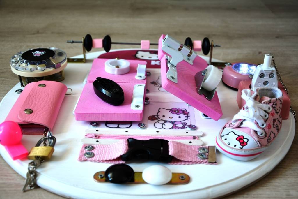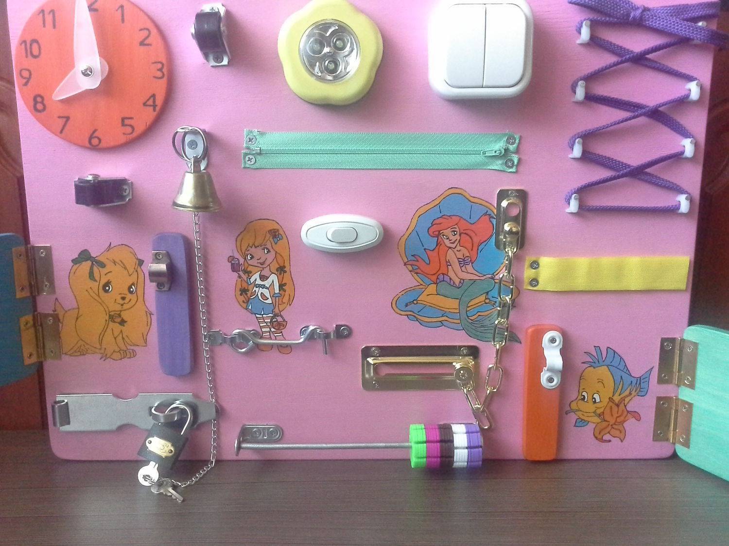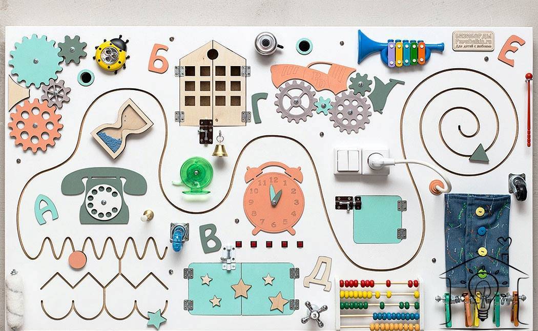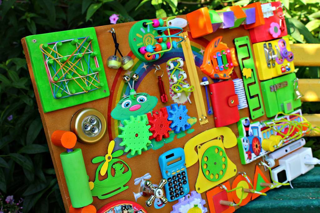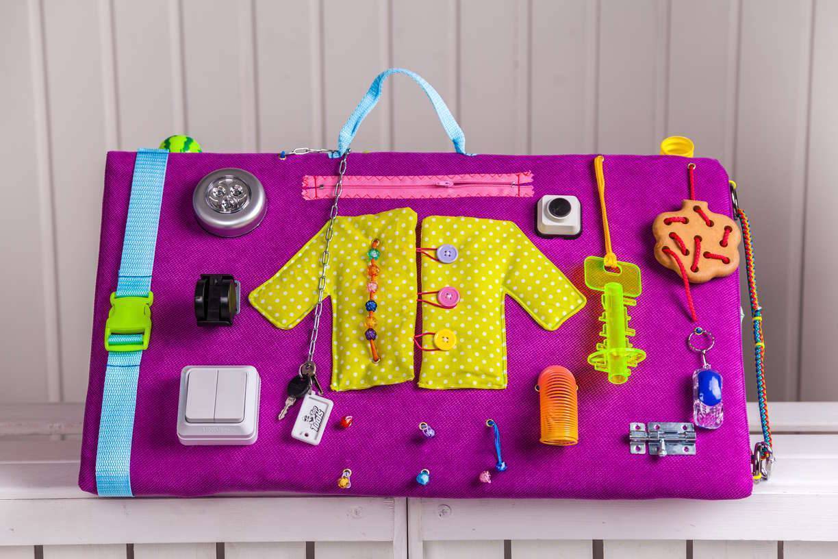 Вместо традиционной обычной доски с зафиксированными развивающими деталями, можно сделать интересный бизиборд.