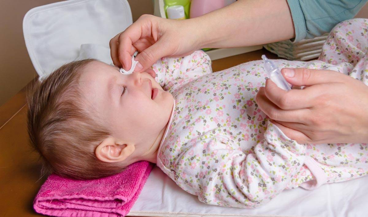 - Утром промойте веки ребенка, очистите их от гноя и закапайте антибактериальный раствор. Достаточно одной капли в один глаз.