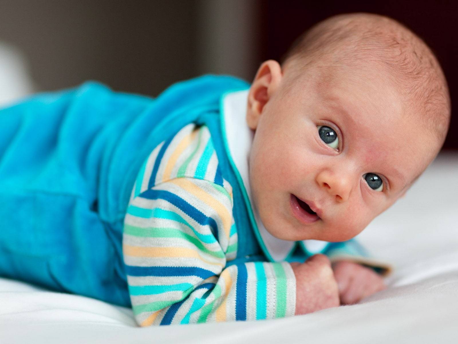 К концу первого месяца жизни ребенок уже в состоянии высоко держать голову, лежа на животе, как минимум три секунды.