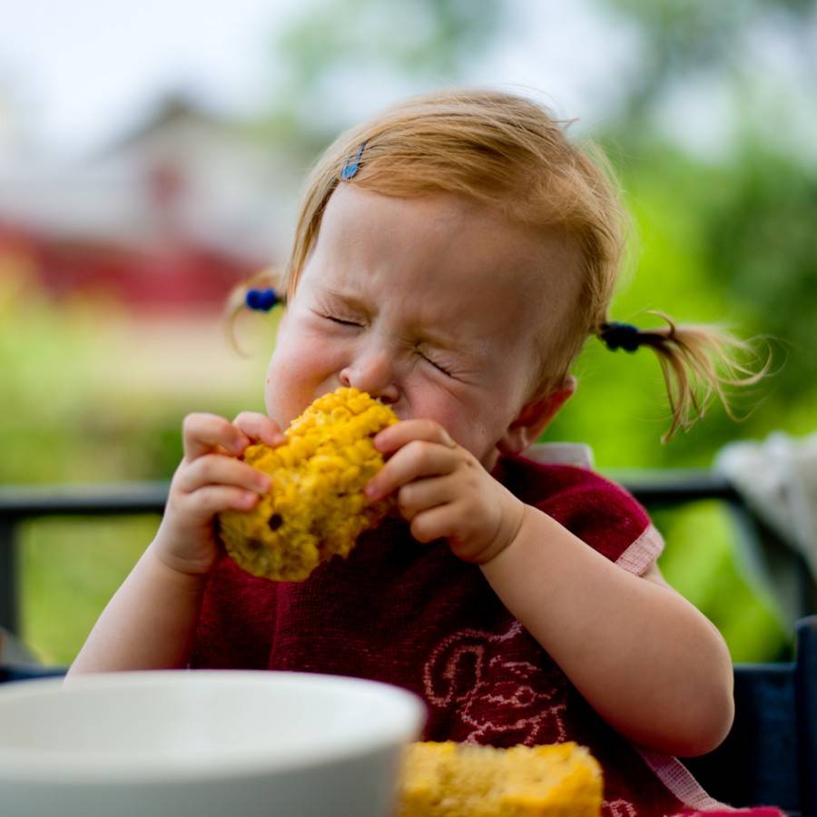 - Переход от жидкой к полужидкой и твердой пище. У ребенка в 2 года уже 20 молочных зубов. Он может полноценно жевать и употреблять грубую, твердую пищу. Переход к плотной пище должен быть постепенным. Сначала в рацион питания ребенка в 2 года должны входить разваренные каши, запеканки, тушеные овощи, прокрученное мясо. Со временем малыш научится откусывать и хорошо пережевывать мясо, твердые овощи и фрукты.