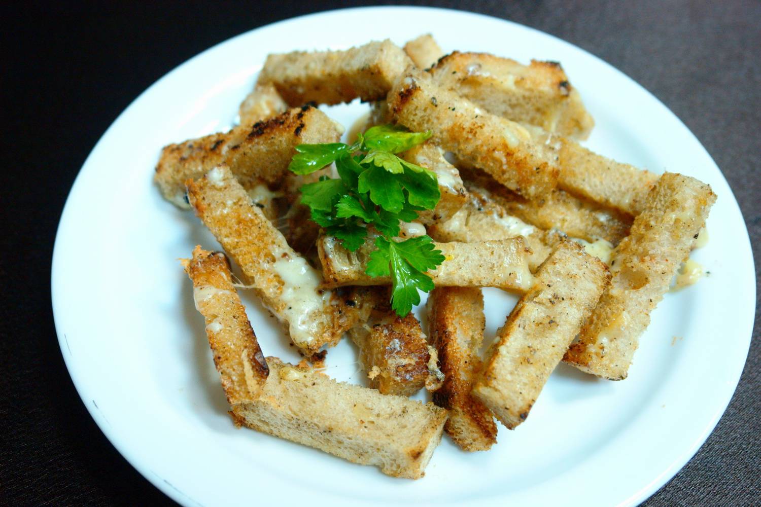 - Удаляем с хлеба корочку и нарезаем на некрупные кусочки произвольной формы.