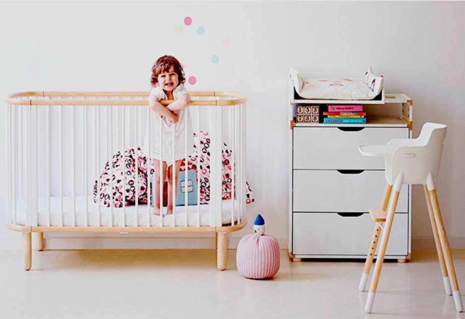 - Конструкция. В данном случае много зависит от площадей комнаты и предпочтений родителей. Классический вариант – прямоугольный с закрытыми 4 сторонами. Такой вид может быть с качалкой на колесах или маятником. Также можно найти модели с комодом, трансформеры, которые легко изменить на обычную кровать или целый гарнитур для комнаты. Круглые кроватки. У каждого вида плюсы и минусы, поэтому решение принимать надо самостоятельно.