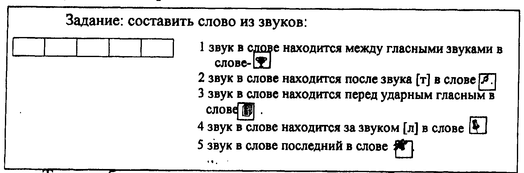- В коробку помещаются буквы, из которых можно составить несколько коротких слов. Ребенок достает буквы, выполняет поставленную задачу, после чего придумывает предложения с разгаданным словом.