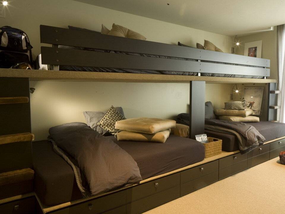 Комната с высокими потолками идеально подойдет для установки трехъярусной кровати