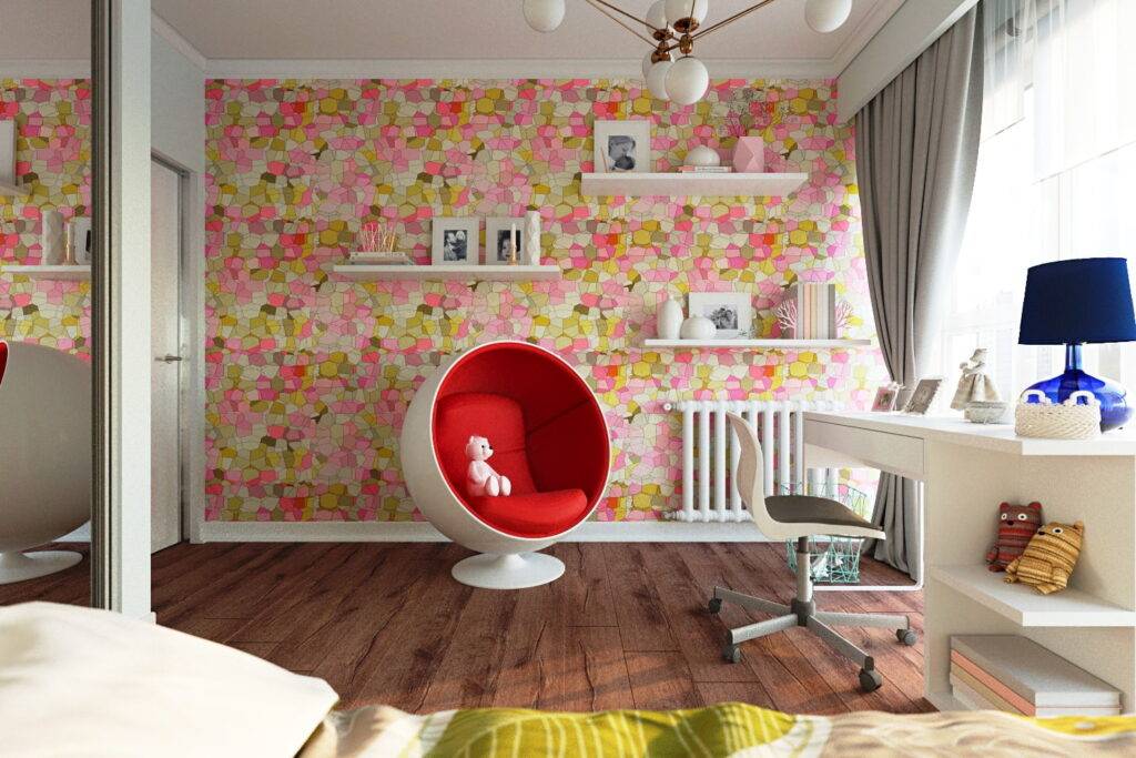 Но если полностью такими обоями заклеить комнату, то это может вызывать перевозбуждение и мешать выполнению учебных школьных заданий.