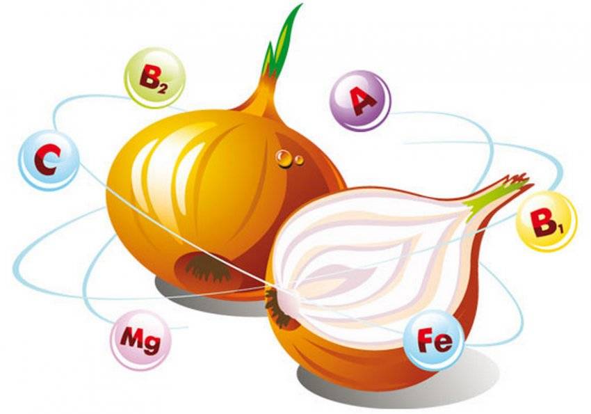 Смесь из лука и мёда является полноценным источником витаминов группы В, аскорбиновой кислоты, витаминов А, Е, РР, К, а также целого комплекса микро- и макроэлементов