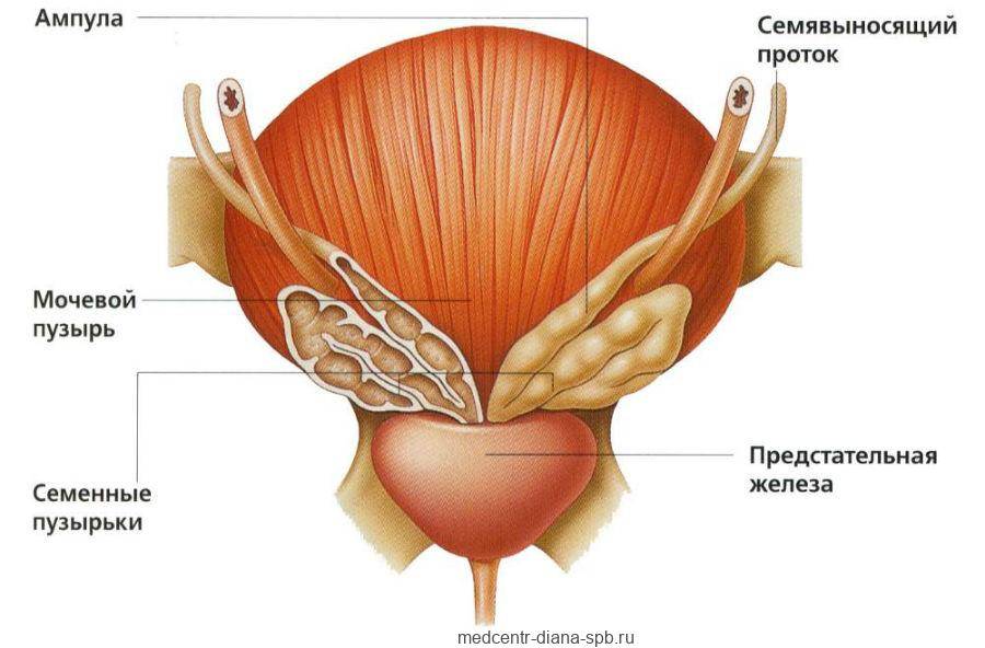 Простата, также известная как предстательная железа, имеет скромный размер – с грецкий орех, но выполняет очень важную функцию – репродуктивную. Железа расположена в месте пересечения мочеполовых путей – ниже мочевого пузыря, прямо у устья уретры, которая, к тому же, проходит прямо через центр органа.