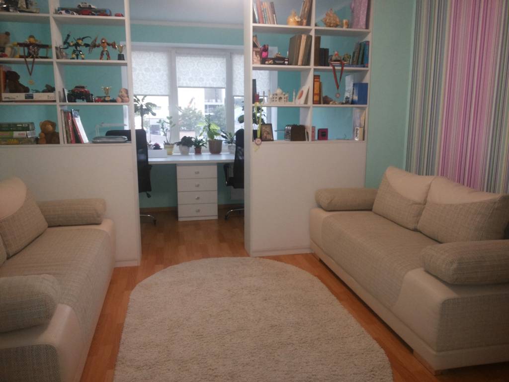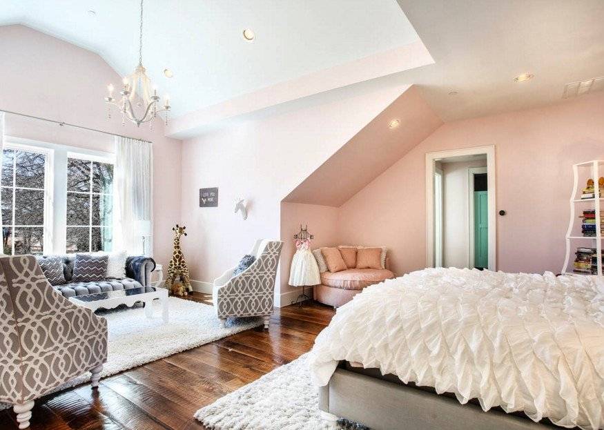 Большая комната с достаточной площадью может быть оборудована не только привычными зонами для отдыха или учебы, но и вмещать в себя специальное гостевое пространство для встреч с друзьями.