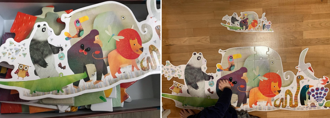 С пазлом можно изучать животных, развивать память и логическое мышление, а собранный — повесить на стену в детской комнате.