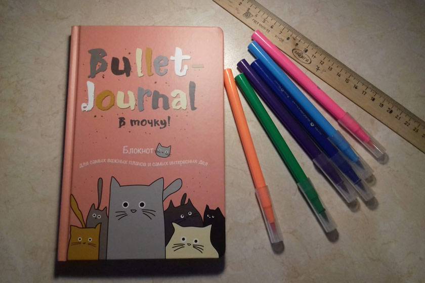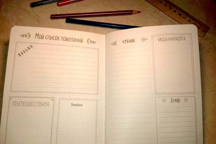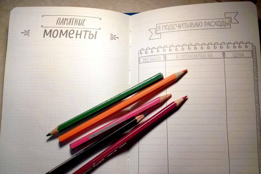 Творческим людям прекрасно подойдут блокноты Bullet Journal. Не обязательно покупать фабричный, можно сделать свой из тетради в клеточку.