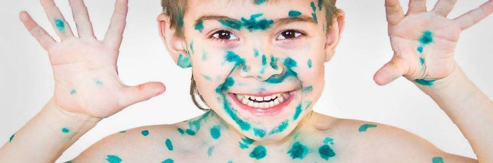 Пузырьки появляются не все сразу, а с разницей в несколько дней, поэтому карантин по ветряной оспе длится до трех недель. За это время на коже могут быть видны высыпания в разных стадиях развития – от пятен до корочек. Для лечения ветрянки врачи по-прежнему рекомендуют к использованию раствор бриллиантового зеленого, который дезинфицирует и подсушивает водянистые пузырьки. Да, это некрасиво, ребенок будет ходить пятнистым, но зато эффективно для предотвращения нагноения от расчесов и быстрого заживления ранок.