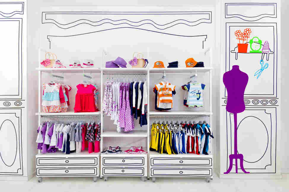 Не нужно акцентировать внимание на том, что это именно магазин одежды. Многие дети не любят ходить по магазинам с одеждой, но не откажутся от похода в магазин игрушек. Даже если магазин планируется сделать исключительно под продажу вещей, небольшую полочку под мягкие игрушки или конструкторы, детские сумочки с забавными персонажами, нужно выделить и постоянно пополнять