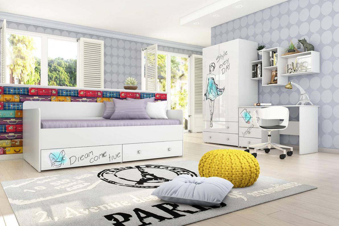 На фото комната для девочки подросткового возраста, обставленная белой мебелью.