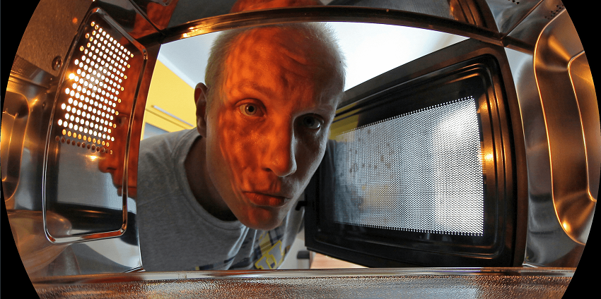 - В микроволновой печи еда разогревается весьма быстро. Ведь молекулы воды, что имеются в любой еде, начинают двигаться под влиянием волн магнетрона в миллионы раз быстрее.
