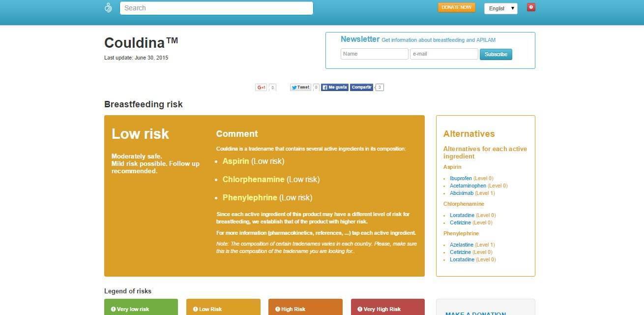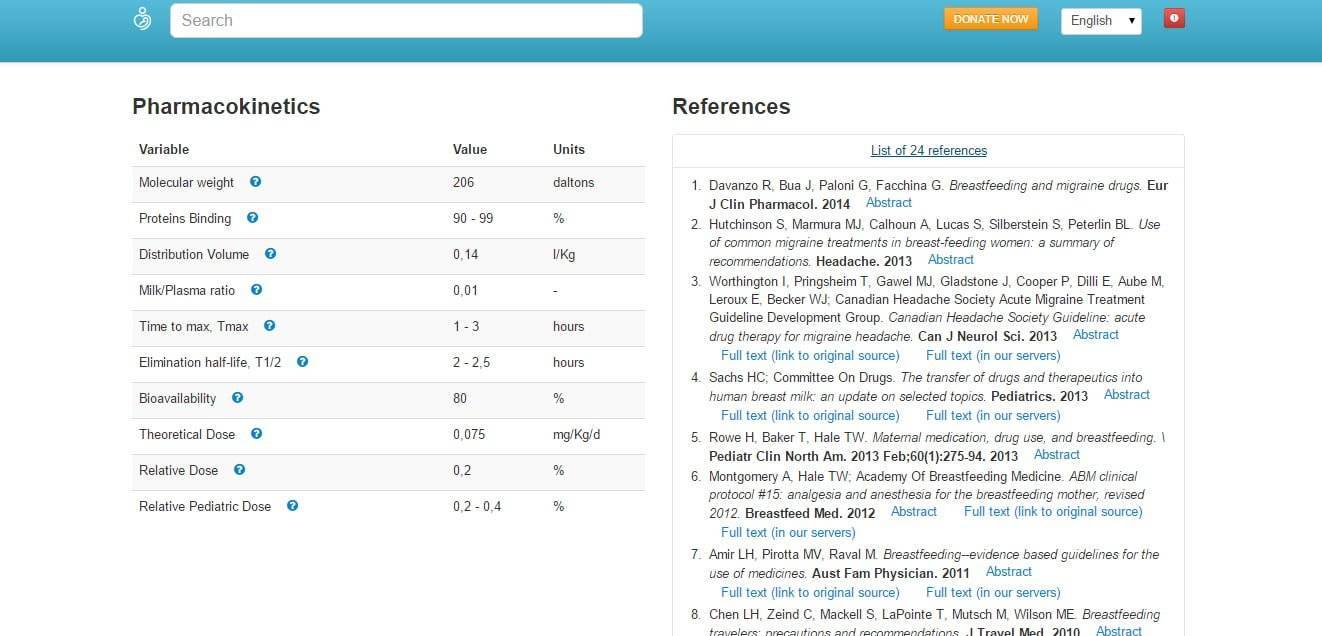 Помните, что информация, предоставляемая справочником, нужна не для того, чтобы на ее основе самостоятельно назначать себе лечение. Это всего лишь сайт, с помощью которого можно проверить, безопасно ли средство, назначенное врачом. Или, если врач говорит, что нужно прервать грудное вскармливание, вы можете выяснить, действительно ли это необходимо.