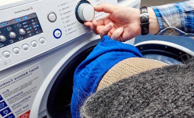 Эффективность работы стирального агрегата зависит не только от суммарного веса белья, но и его объема. При закладывании вещей барабан не следует перегружать, утрамбовывать (особенно, если стирает машина типа «Малютка»). Синтетикой допускается загружать автомат наполовину. Шерстяными изделиями на треть.