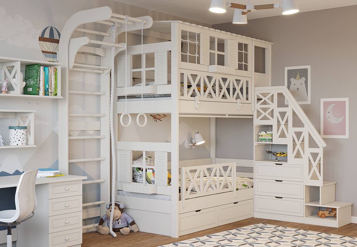 «Чаще спрашивайте ребёнка, что ему нравится, как бы он хотел украсить свою комнату, чем, в каком цвете. Его мнение в данной ситуации будет служить отправной точкой. Смело используйте спортивные комплексы.