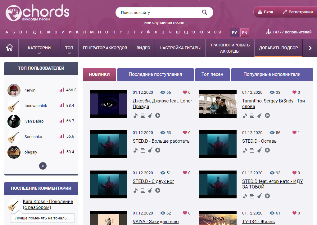 Чтобы понять, насколько верно вы подобрали, смотрите не на аккорды как таковые, а на интервалы между тониками аккордов. Если это пока трудно, найдите понравившуюся песню на сайте mychords.net и «подвигайте» тональности вверх-вниз. Если вы подобрали мелодию верно, одна из тональностей покажет вам те аккорды, которые услышали вы. Сайт содержит массу песен, старых и новых, и имеет простую навигацию: