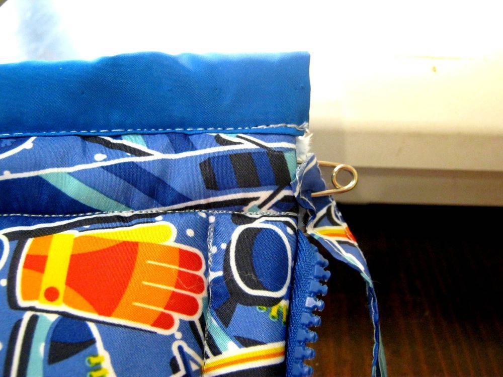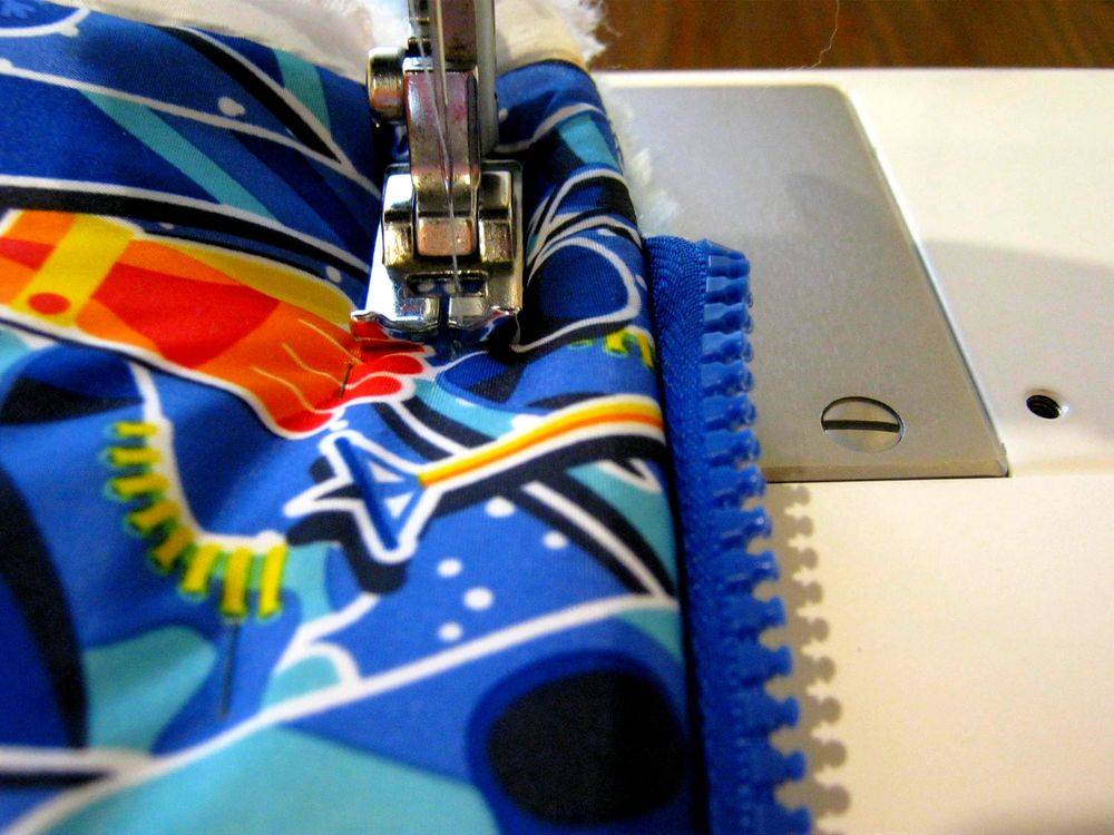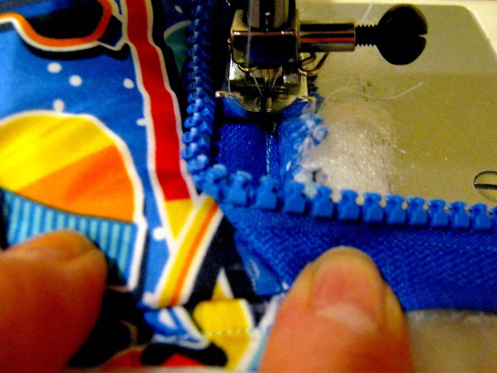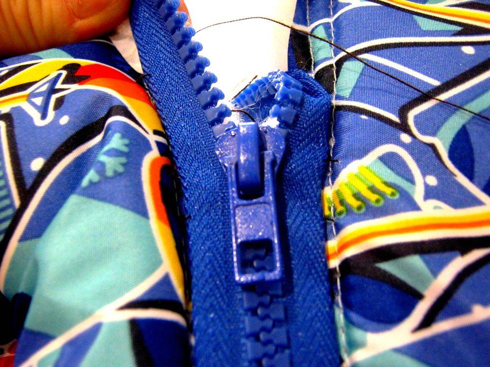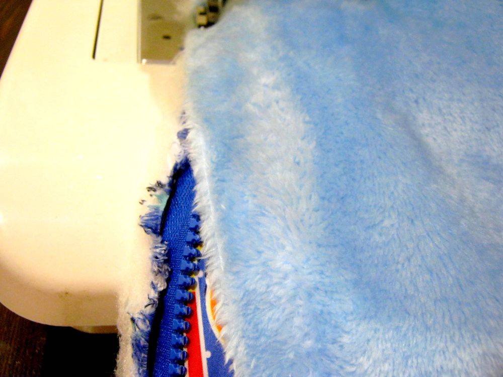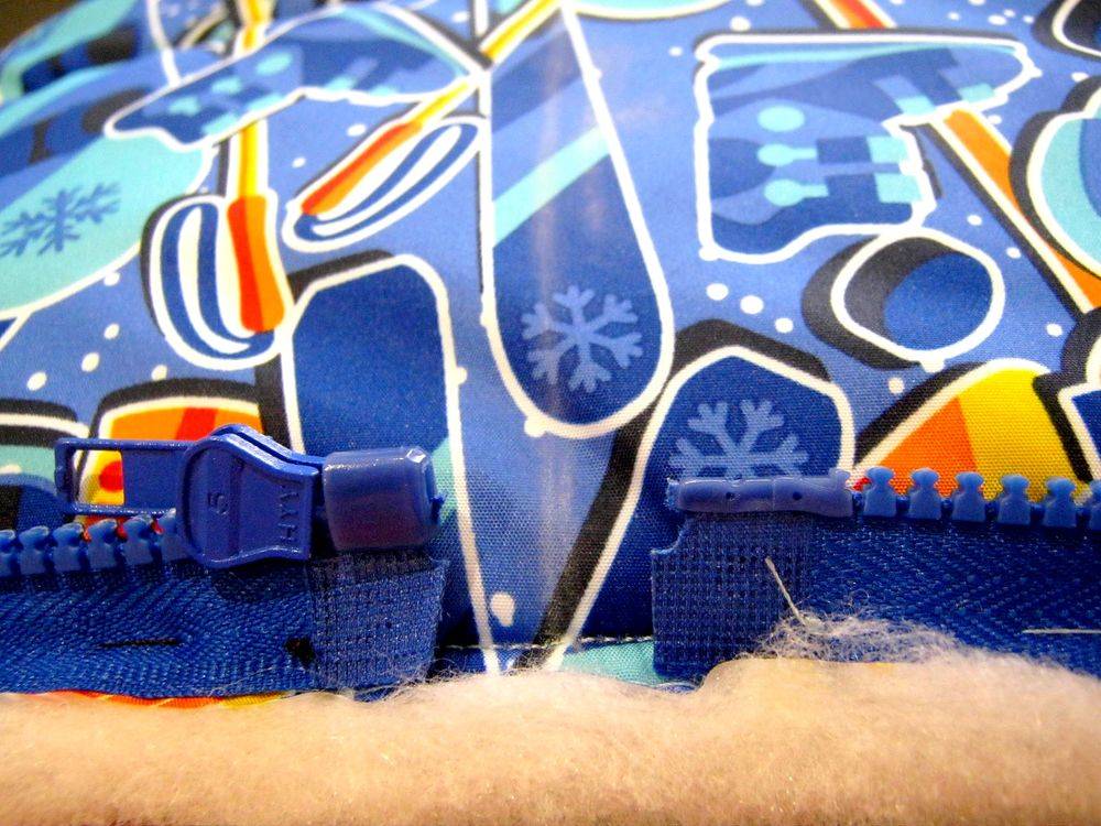 - по бокам одеяла внизу, начиная от середины, пришить детали разъемной молнии
