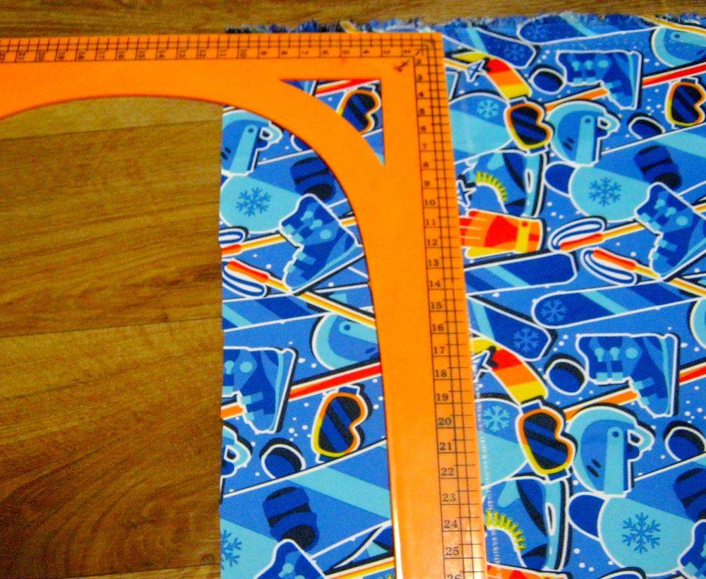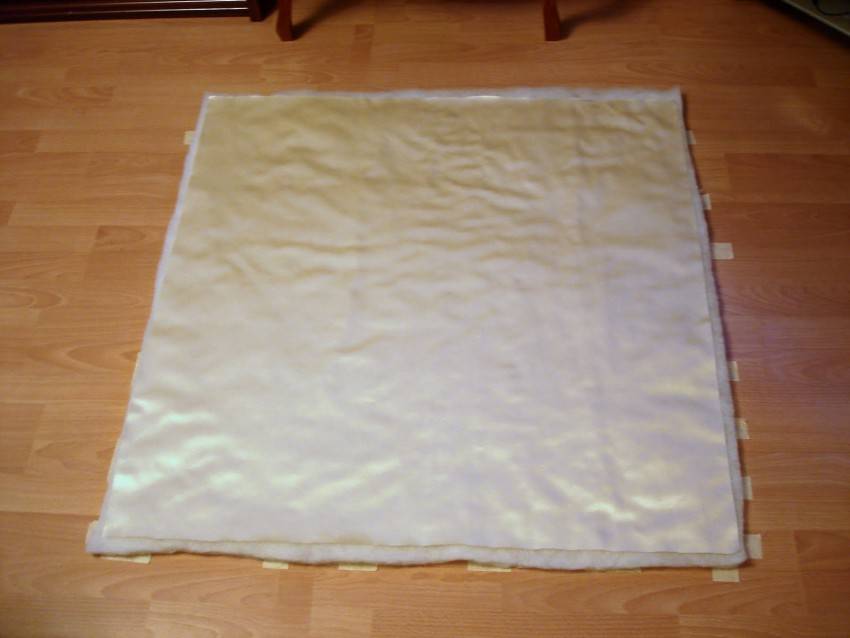 - Из ткани и синтепона нужно выкроить квадрат с одинаковыми сторонами по 120-130 см.