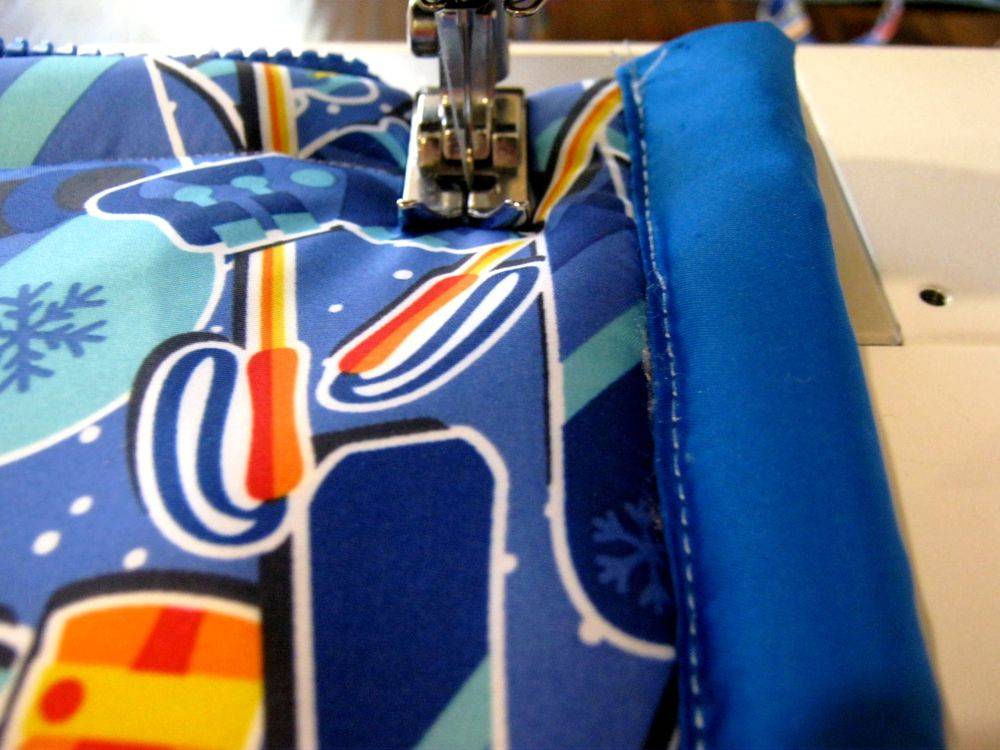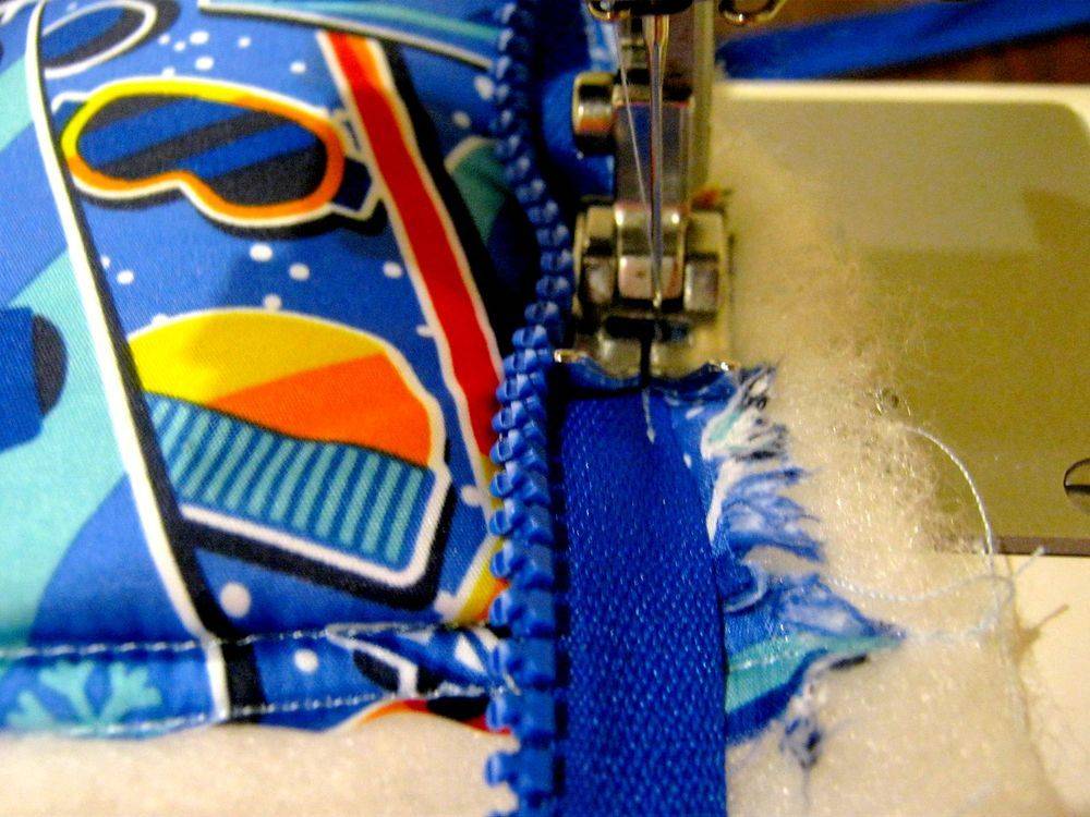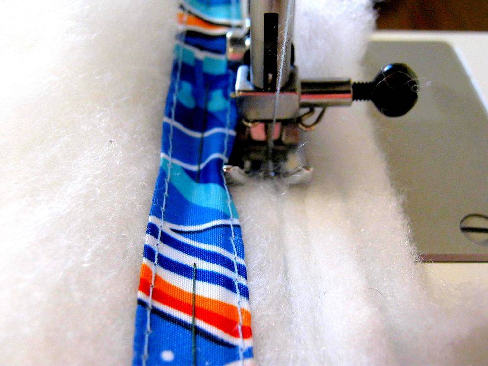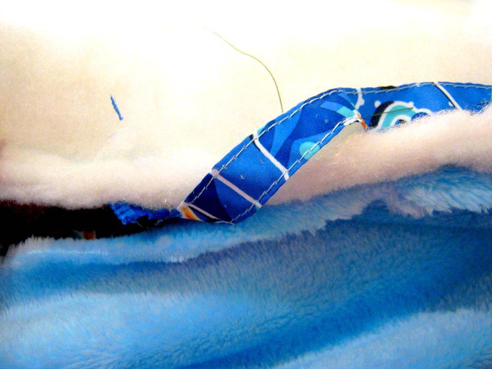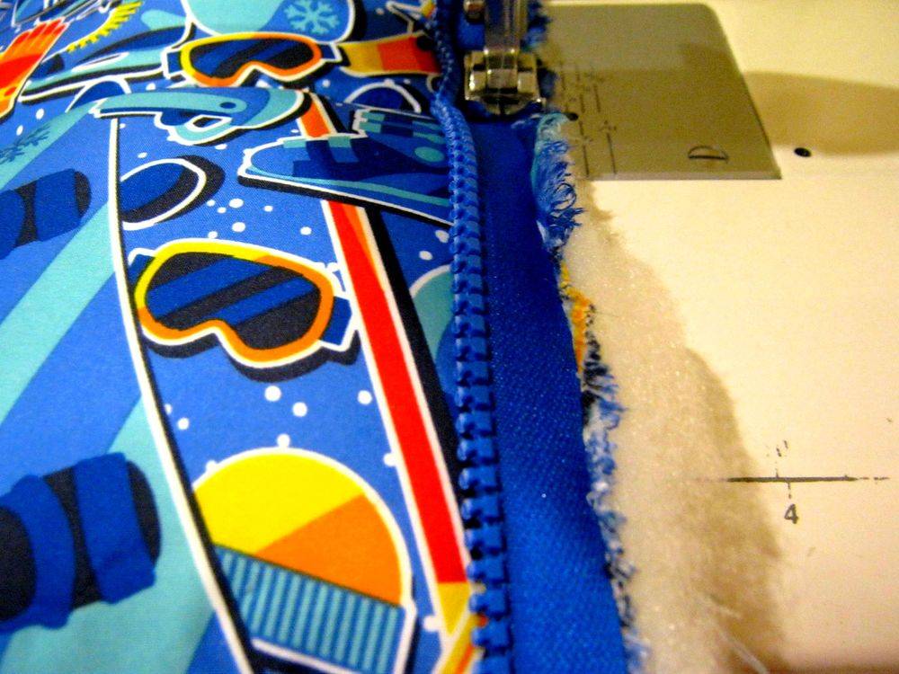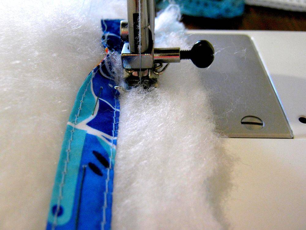 - Теперь прошить между собой на машинке наружный слой, утеплитель и подкладку.