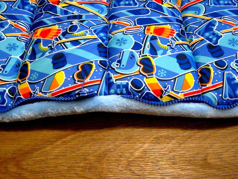 Зимой же конверт нужно как следует утеплить. Хороша не только прослойка из синтепона или ваты, но еще вариант шитья тканью с начесом (дополнительным утеплением) с внутренней стороны конверта. В таком случае следует учитывать теплоту конверта, когда одеваете ребенка. Иначе ребенок может перегреться, а затем и подхватить простуду или начать хныкать из-за того, что ему слишком жарко. Зимние варианты прошивают более мелким швом.