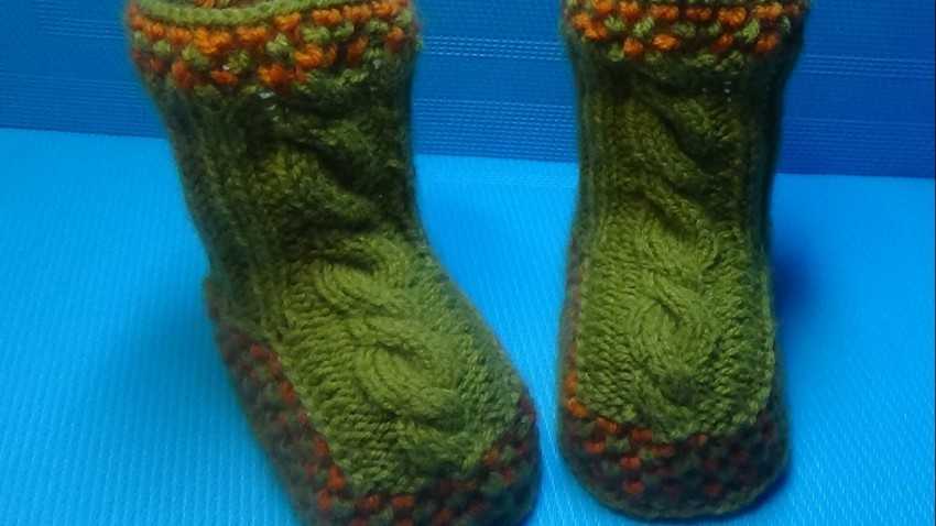 Этот вид почти не отличается от простого. Чаще всего их вяжут обычными нитками, а в качестве декора используют разные цвета, с помощью которых удается придать изделию вид ботинок. Существуют разные способы создания этого аксессуара как на спицах, так и крючком.