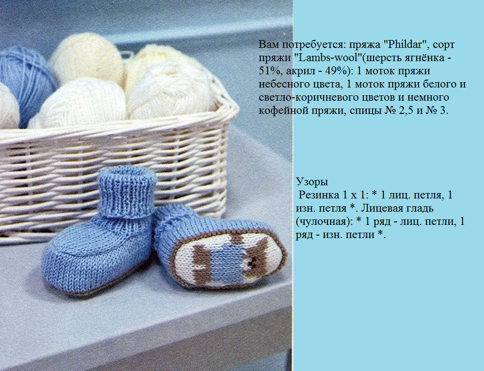 Пинетки спицами для новорожденных мальчиков