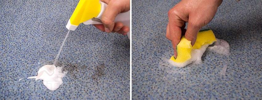 Хороший метод устранить не только пятно от мочи, но и запах. Пышная пена наносится на проблемный участок, где должна оставаться до полного высыхания. Без смыва остатки собираются пылесосом.