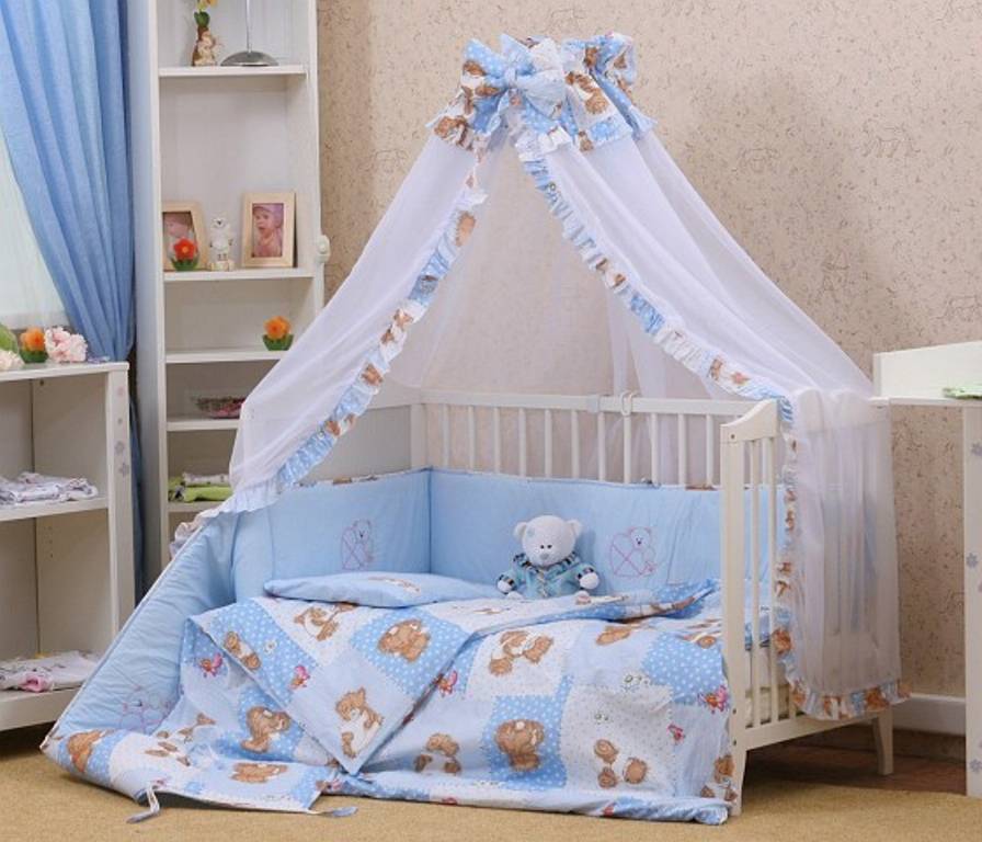 Балдахин вешают над детской кроваткой. Он защищает малыша от насекомых и сквозняка, ограждает от шума и света. Легкая прозрачная ткань прекрасно рассеивает свет и предотвращает попадание ярких солнечных лучей к новорожденному, что помогает сохранить сон. Она создает ощущение защищенности, уединения и комфорта. Кроме того, балдахин служит эстетичным украшением детской кроватки.