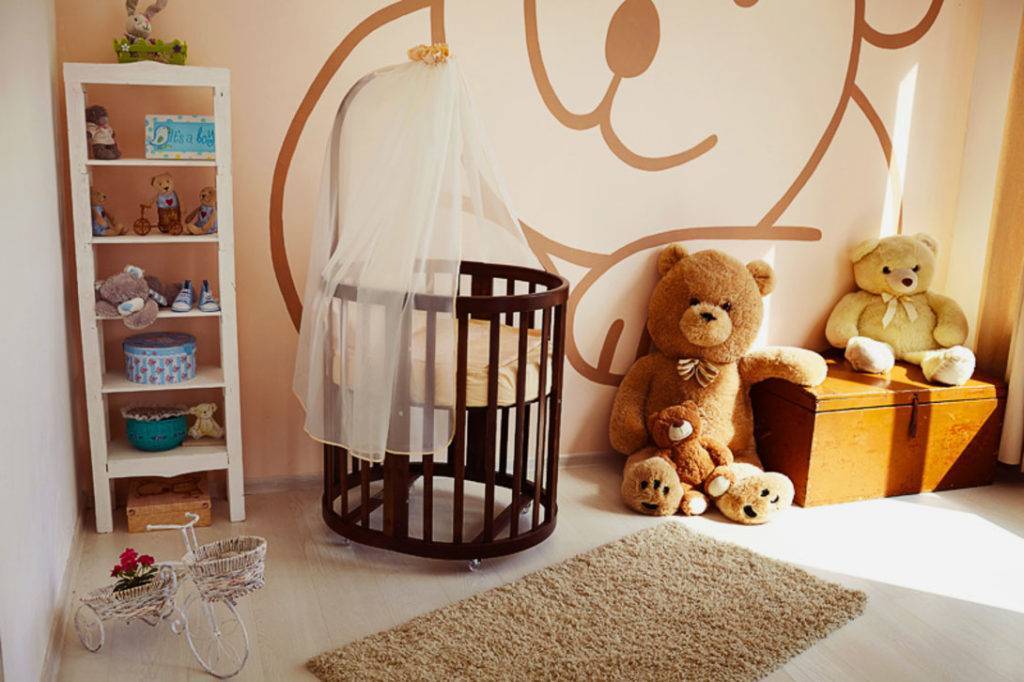 Меньше места займёт кроватка овальной формы. Отсутствие острых углов делает её более безопасной.