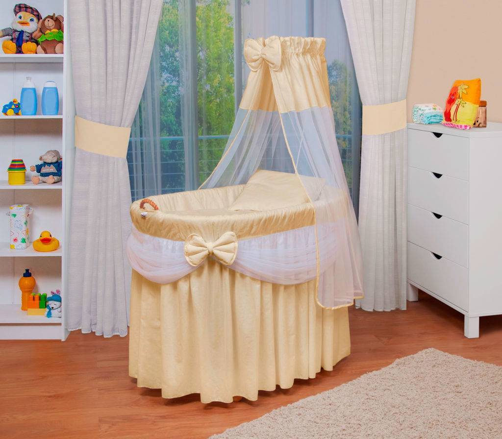 Некоторые отдельные кроватки могут предназначаться только для малышей до 2-3 месяцев. Они достаточно высокие, не имеют надёжных бортиков. Часто представляют собой мобильную люльку, которая стоит на деревянном основании.