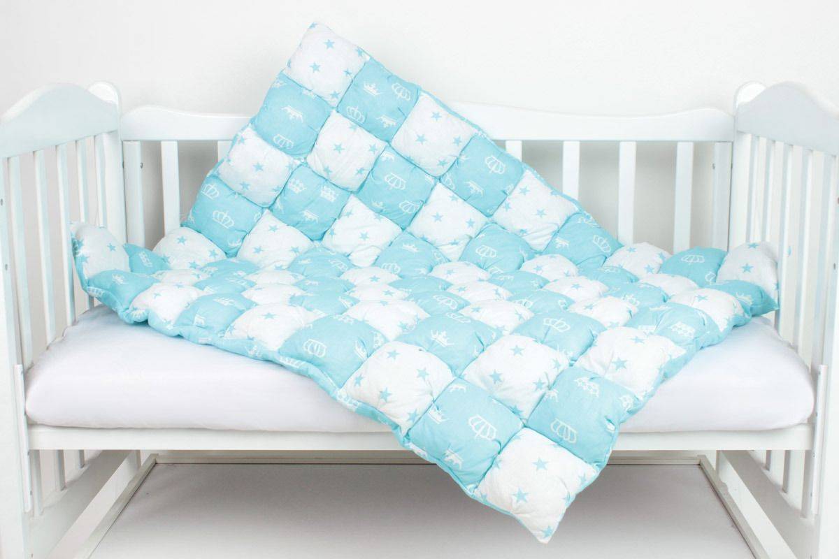 Какое одеяло по размеру выбрать для новорожденного, зависит от постельного белья. Одеялки для грудничка бывают от 90*90 см до 120*120 см.