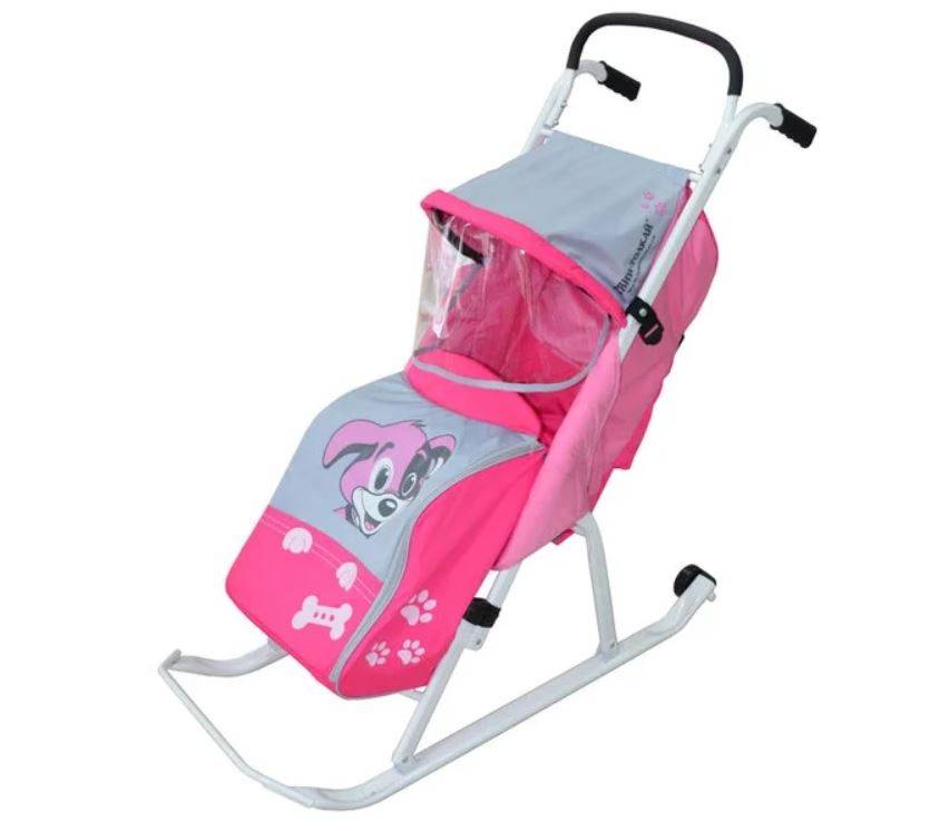 Настоящий автомобиль на дорогах детских парков. Модель считается более игровой, чем все остальные образцы, тем не менее, для транспортировки она также может быть использована. В санках нет утепляющего каркаса, однако они оснащены колесами, что может позволить использовать их и в качестве коляски для подросшего ребенка. Фиксирующие ремни гарантируют надежное размещение на сидении. Ручка агрегата перекидывается, что позволяет быстро трансформировать образец из санок в полноценную прогулочную коляску. Кроме того, грузоподъемность до 140 килограммов позволит родителю активно участвовать в зимних играх с ребенком.