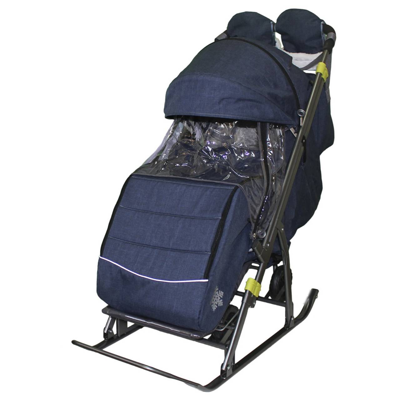 Эти зимние санки-коляска подходят для детей от 6 до 36 месяцев. Они имеют стильный дизайн и усиленную раму из металла, выдерживающую нагрузку до 50 кг. Изделие легко складывается и не занимает много места, что упрощает их хранение дома и транспортировку в автомобиле. Полную безопасность обеспечивает трехточечный ремень. От холода и ветра ребенка защитит складной козырек, в комплекте также имеется накидка для ног из непродуваемого водоотталкивающего материала. Плоские полозья гарантируют стабильную и безопасную езду, а колеса, которые размещены на задней части, позволяют без труда проехать по асфальту.