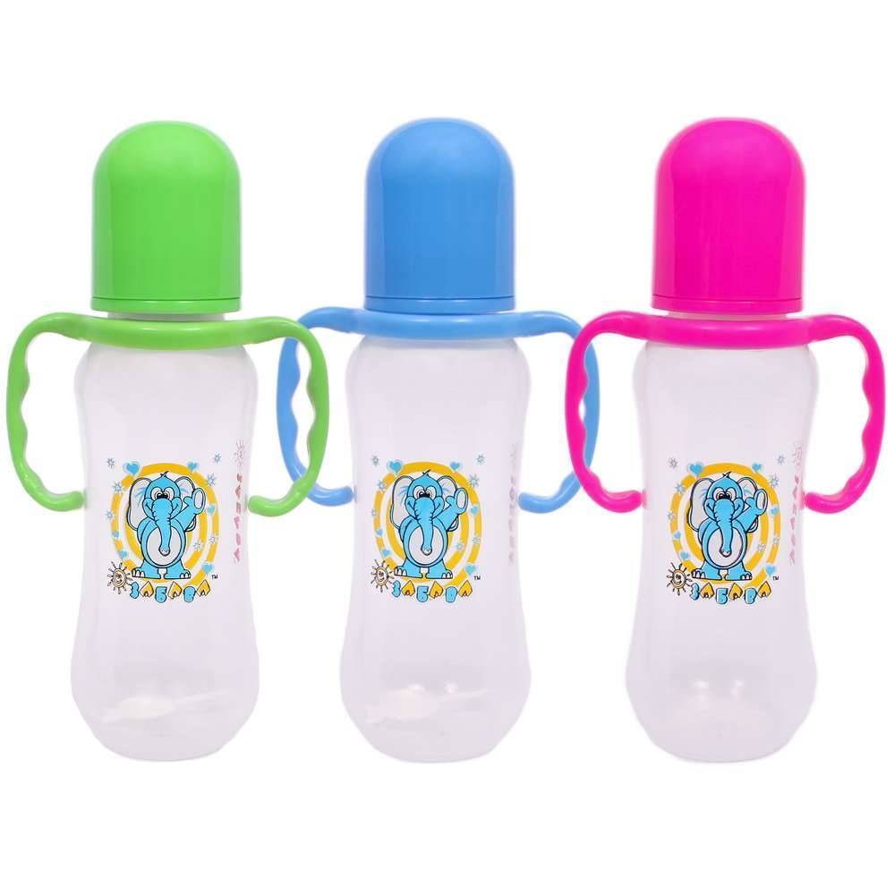 Пластик весит меньше, не бьется и может изготавливаться в самых причудливых формах. Такой вариант будет оптимальным, когда ребенок уже начинает держать бутылочку сам. Несмотря на то, что пластиковая емкость прекрасно переносит воздействие кипятка, она может окраситься при действии красящих компонентов сока, компота или супа.