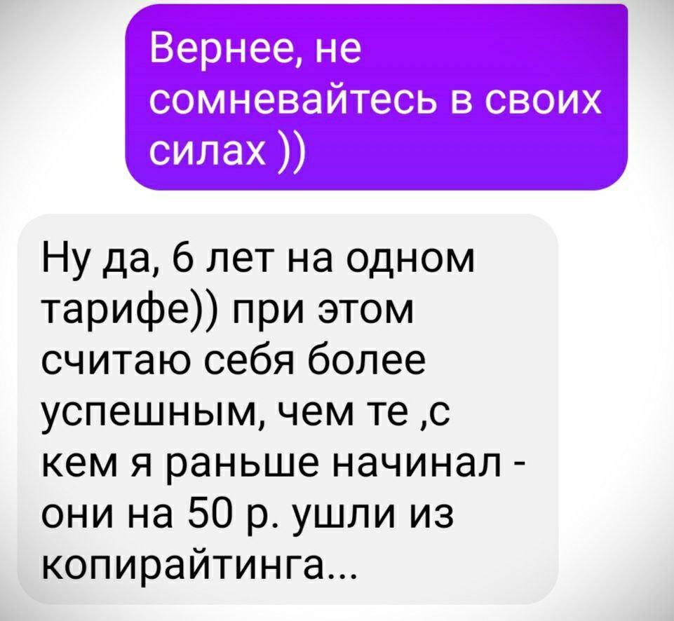 В копирайтинге есть большой плюс — зарплату можно снимать часто! Я выводила деньги в среднем 1 раз в 3 дня, чтобы кормить семью. Мы их просто проедали! Так я научилась жить одним днем, ничего не планируя даже на 3 ближайших дня.