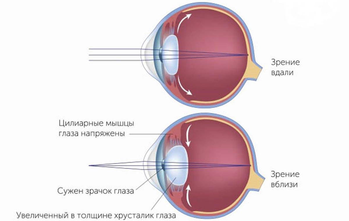Наши глаза могут «настраиваться» соответствующим образом, чтобы увидеть объекты, расположенные далеко или наоборот, рассмотреть мелкие детали у предметов, находящихся рядом. Такая способность называется аккомодацией. Цилиарная мышца меняет свою форму и преломляющую силу естественной линзы так, чтобы острота зрения была отличной, вне зависимости от того, на каком расстоянии находится предмет.