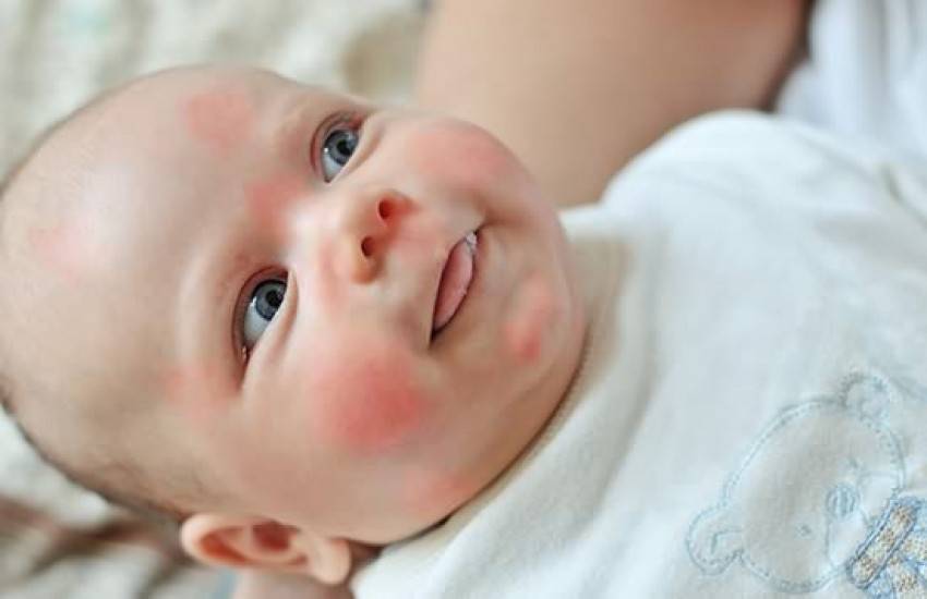 - аллергены можно заметить на кожном покрове в виде высыпаний, покраснений, диатеза, опрелостей или потницы;