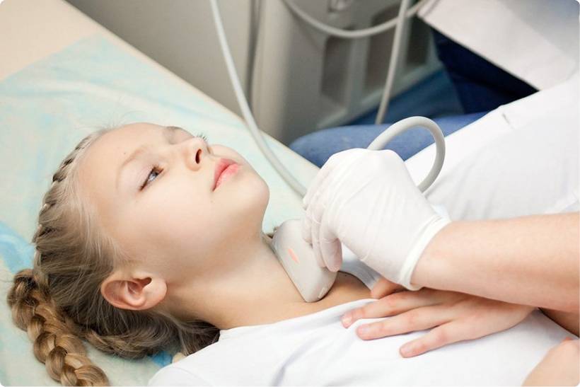 Маленький ребенок может проходить обследование, сидя на коленях у родителей. Если малыш подвергся какому-либо стрессу, рекомендуется обратиться к врачу, так как такое состояние может повлиять на работу желез.