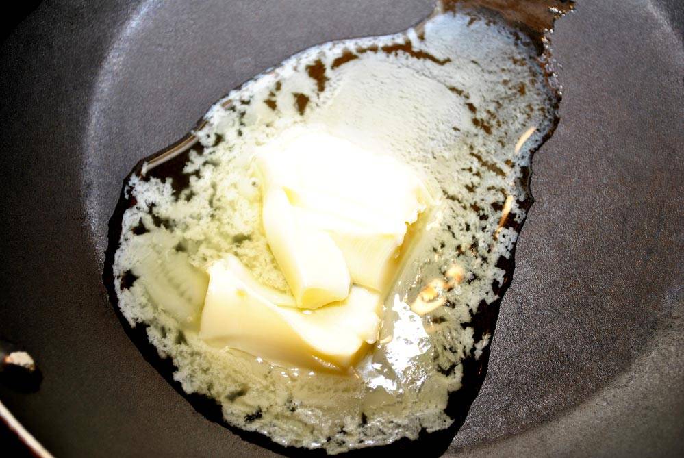 Со сливочного масла я начала неспроста, поскольку жарить на нем безопаснее, чем на некоторых сортах растительного. И это в корне противоречит расхожему мнению о его вреде. В сливочном масле содержится много витаминов А и Е, а температура дымления составляет от 120 до 150 градусов. Жарить на медленном огне с использованием сливочного масла, особенно топленого или гхи, вполне безопасно. При высоких температурах продукты просто обуглятся на сковороде.