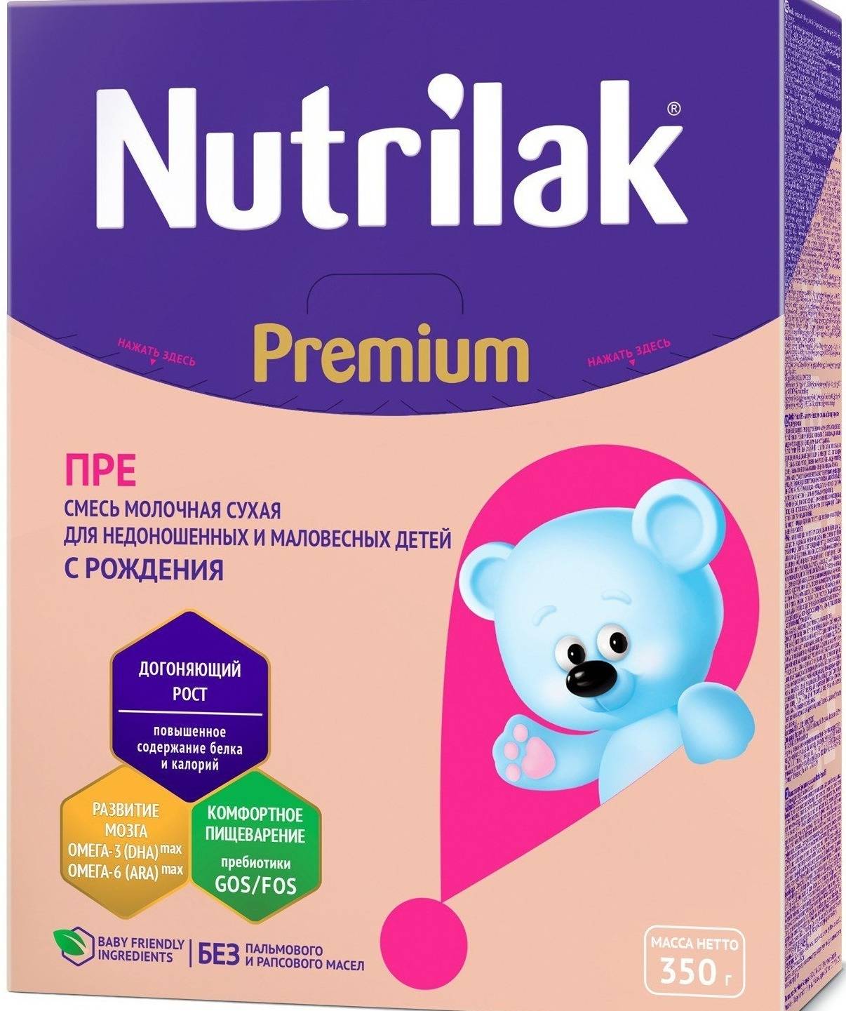 Также специализированная молочная смесь имеет повышенную энергетическую ценность для скорейшего набора веса.